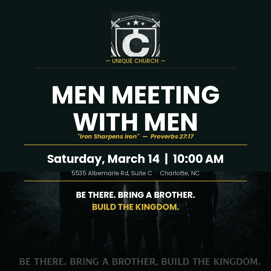 Join us for Men Meeting with Men, a powerful gathering for men who are ready to grow, lead, and build. Expect real brotherhood, spiritual depth, leadership development, and accountability that sticks.