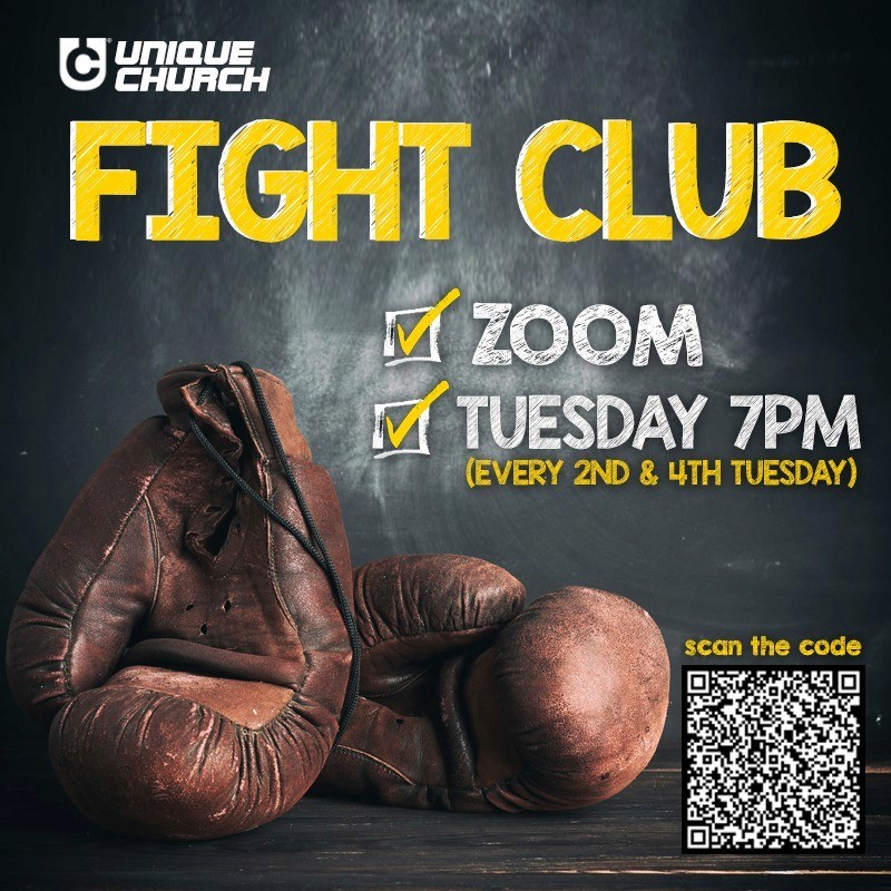 Young adults (18+) are invited to join us for Fight Club on the 2nd and 4th Tuesdays at 7 PM. Real conversations, learning, and growing in faith together.