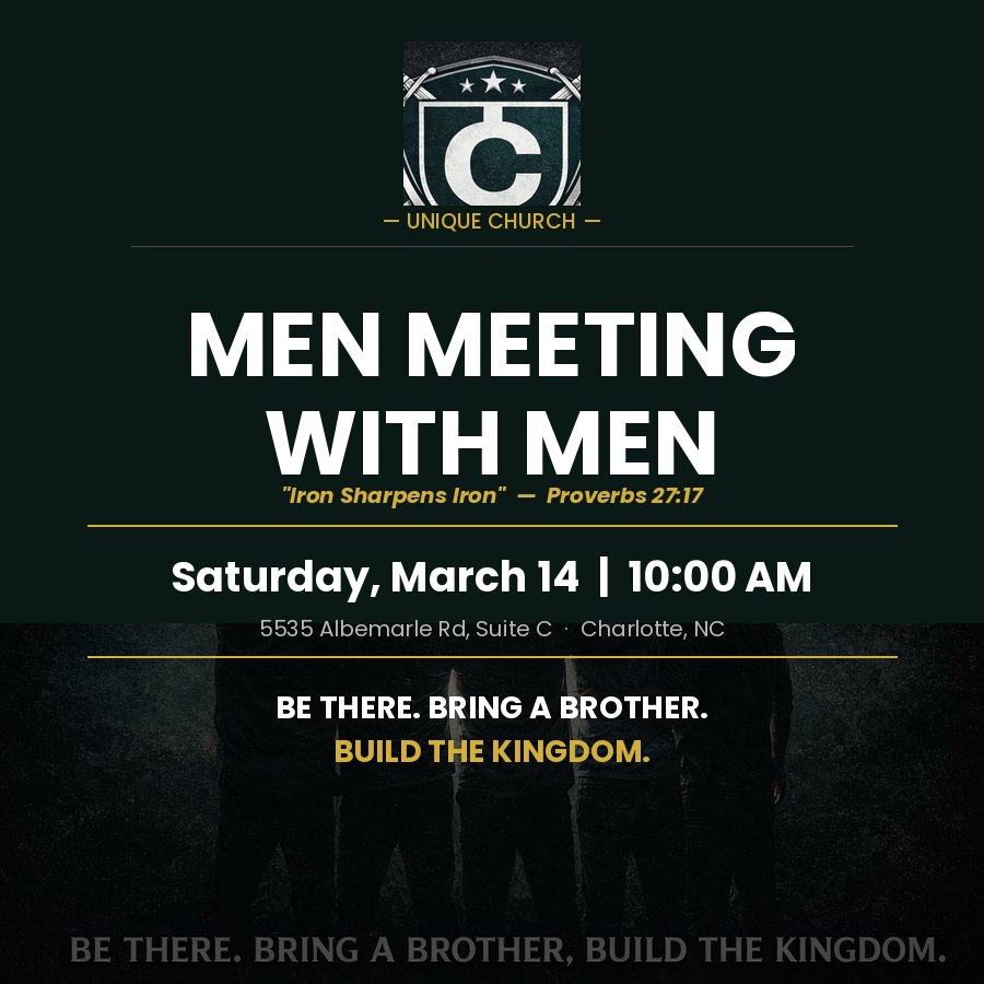 Join us for Men Meeting with Men — a gathering for men ready to grow, lead, and build the kingdom. Be there. Bring a brother. Saturday, March 14 | 10:00 AM